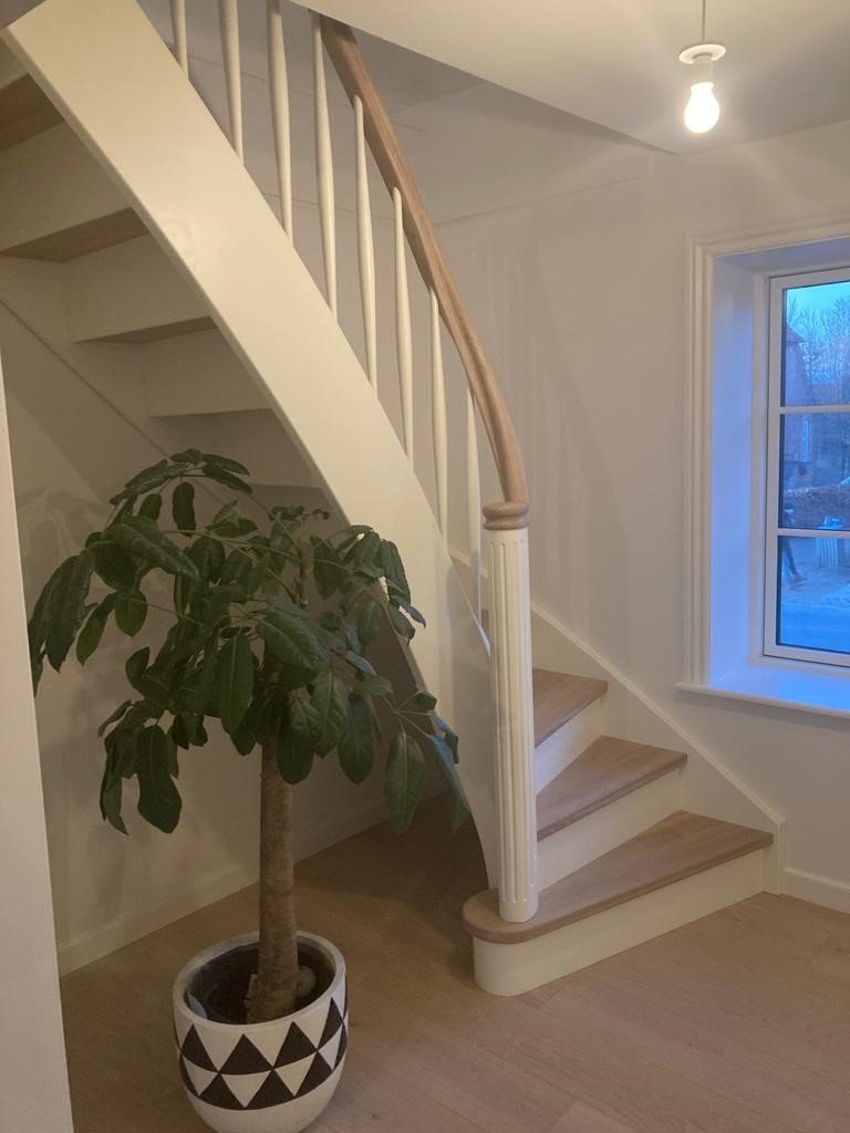 Mette og familien er i gang med et større renoveringsprojekt i deres gamle murermestervilla. Inden de gik i gang, var der ikke mindre end fire trapper i huset – to fra stue til førstesal og to trapper fra stue til kælder. Nu er der to, der fuldender den elegante murermesterstil familien ønskede sig.