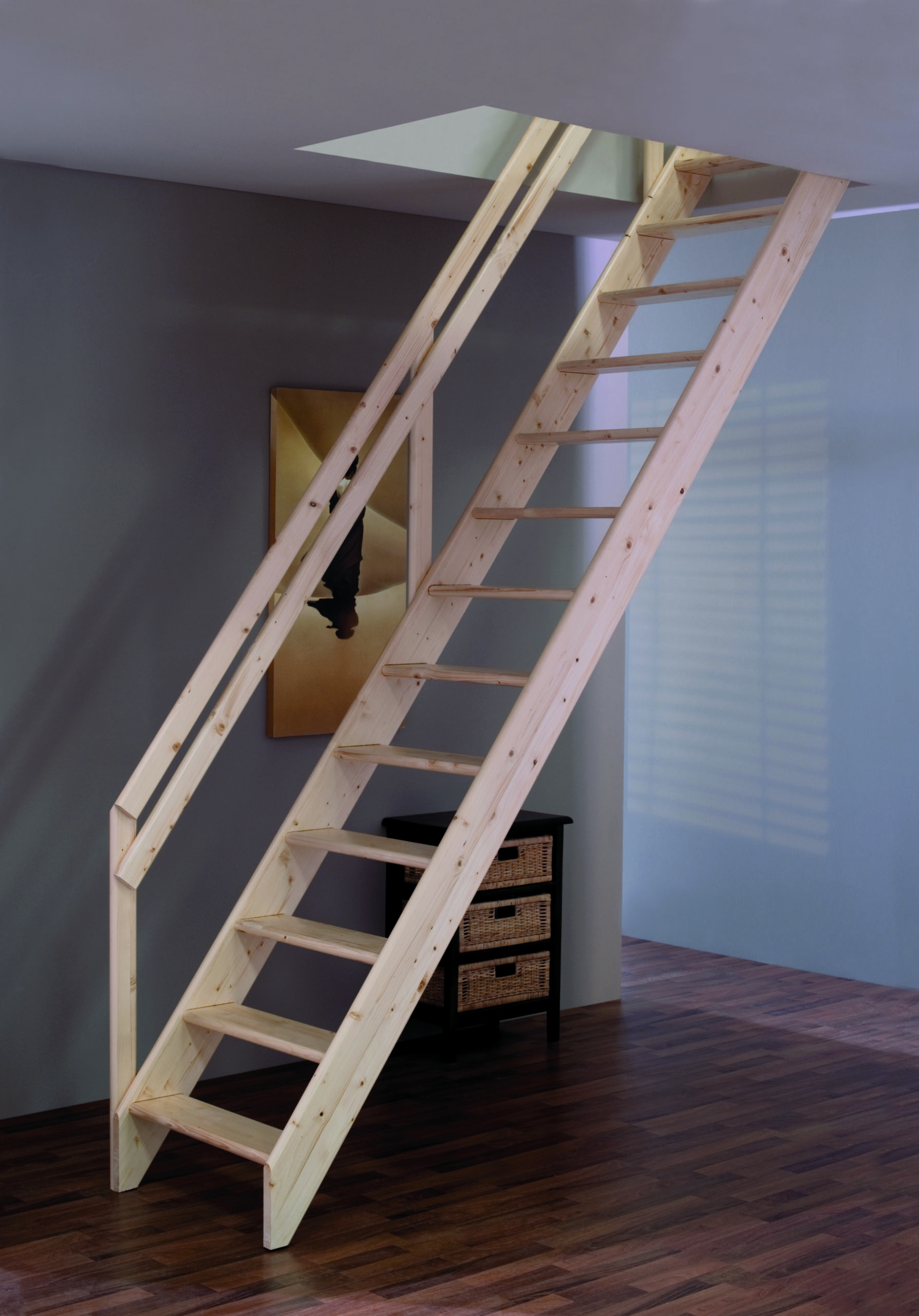 En pladsbesparende hemse trappe der laves med indstemte og fastskruede trin, for større sikkerhed.